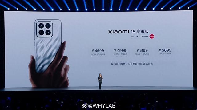 售价方面,小米15亮银版12GB+256GB售价4699元,12GB+512GB售价4999元,16GB+512GB售价5199元,16GB+1TB售价5699元。