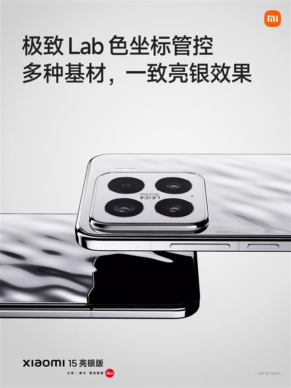 据悉,小米15小米15亮银版背板采用3D热弯玻璃,打造真实波浪触感;中框首创铝金属高亮工艺,带来全新的镜面效果,高亮夺目;整体机身采用极致Lab色坐标管控,实现多种基材,一致的亮银效果。