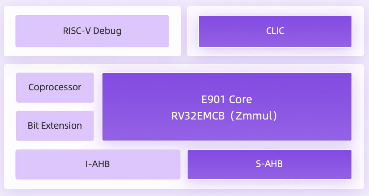 此外,E901还支持协处理器扩展接口,用户可根据需求定制指令扩展模块。该处理器还可与玄铁工具链及其生态软硬件实现无缝对接,有助于加快产品从设计到量产的进程,提升开发效率。