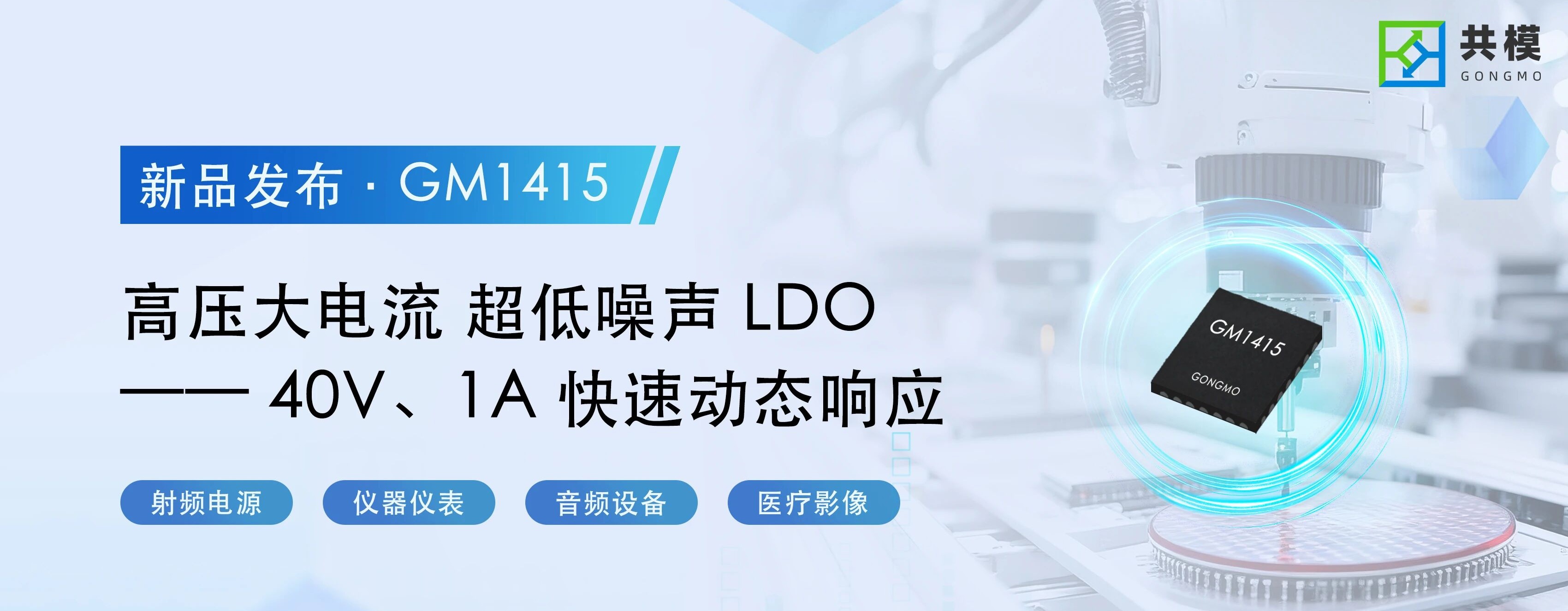 GM1415是一款输入电压高达40V,输出的电流高达1A的快速瞬态响应超低噪声LDO,具有3μVRMS的超低输出电压噪声和高达88dB的电源纹波抑制比,这使得该器件非常适合敏感的射频电源、仪器仪表、音频和医疗影像应用。