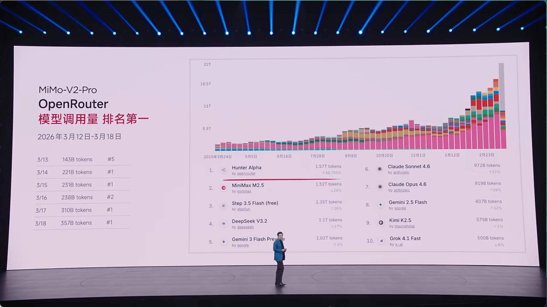 在核心大模型基座方面,小米推出了面向Agent(智能体)时代的旗舰大模型。该模型为总参数达1万亿的MoE架构,激活参数为420亿,并采用了小米自研的混合注意力架构,支持百万级上下文长度。在全球权威的大模型综合智能排行榜中,该模型位列全球总榜第八,按品牌排名位居全球第五。针对Agent复杂工作流的编排与长流程规划能力,该模型平均任务完成率达到81%,在全球相关评测中与行业头部主流模型处于同一领先梯队。此外,该模型在上线全球API聚合平台仅一周后,凭借快速精准的任务执行能力,便登顶了模型调用量周榜第一。