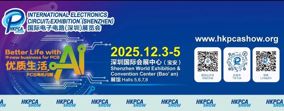 2025国际电子电路(深圳)展览会(HKPCA Show)将于12月3-5日在深圳国际会展中心举办,以“优质生活・AI-PCB商机闪耀”为主题,呈现AI驱动下的PCB全链条创新盛宴。